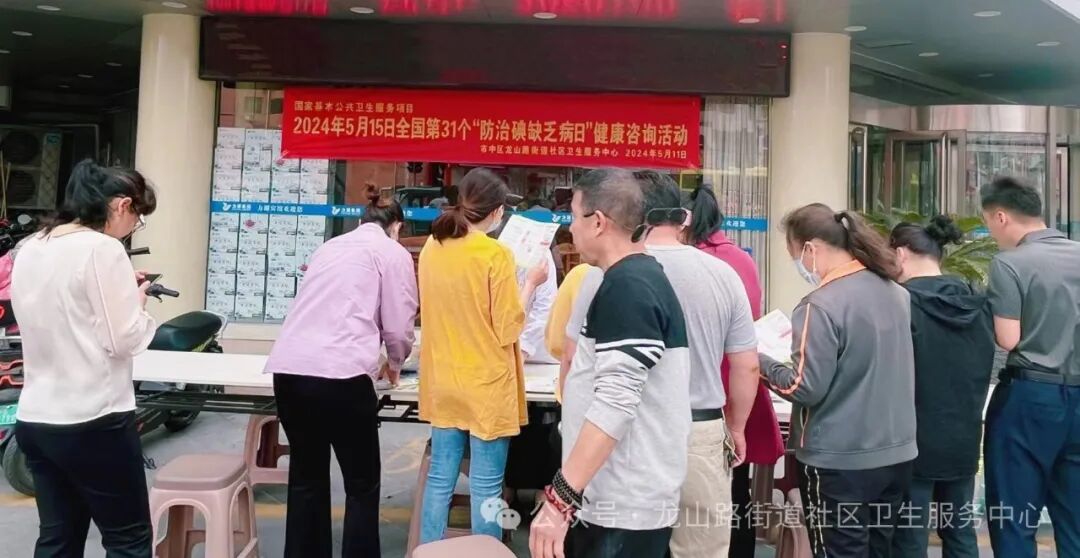 2024年5月15日是我国第31个“防治碘缺乏病日”,为增强群众的健康意识,提高群众的健康水平,巩固碘缺乏病防治工作成果,5月14日,龙山路街道社区卫生服务中心组织医务人员在老车站社区开展“防治碘缺乏病日”健康教育活动。今年的宣传主题是:食盐加碘防疾病,平衡营养健康行。
