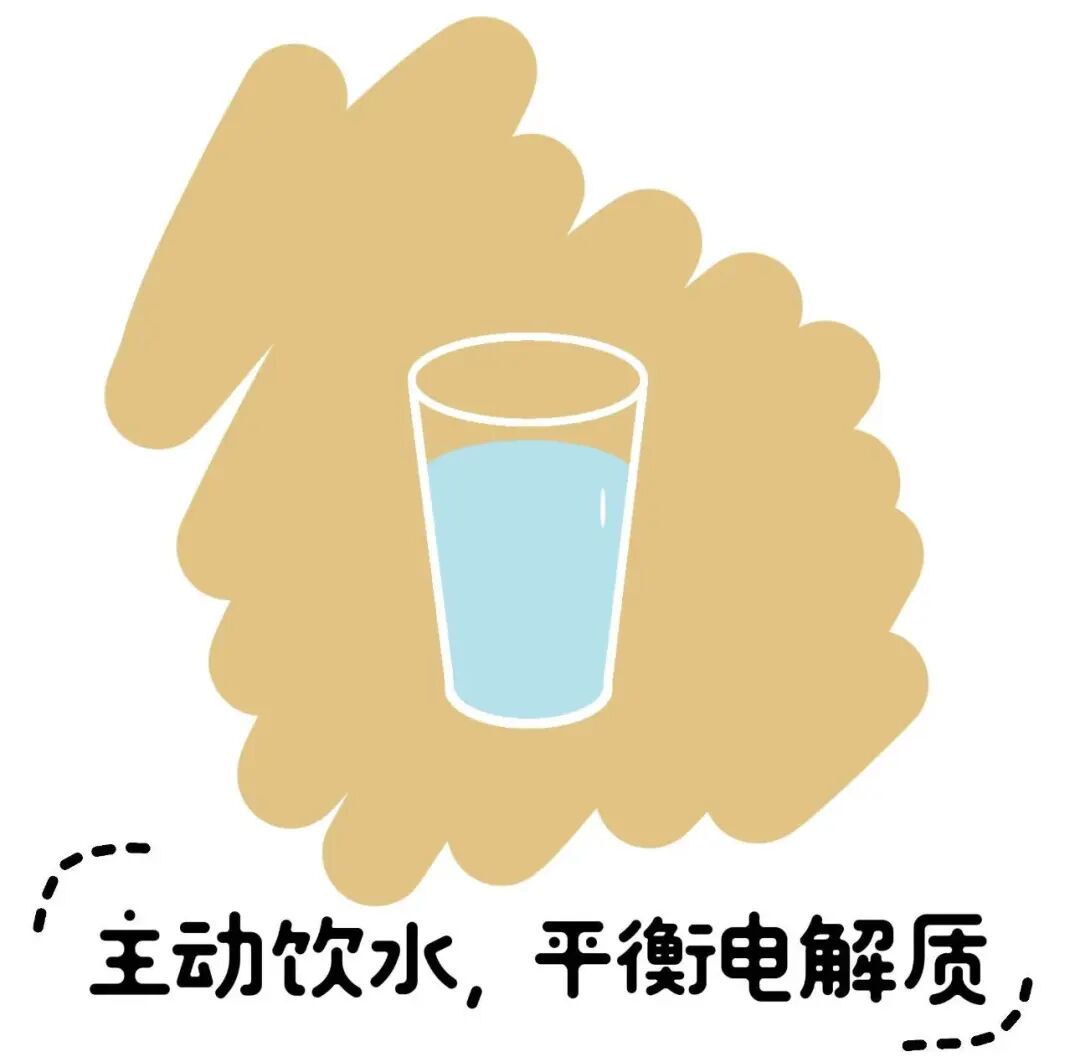 定时饮水,科学喝水。高温环境下每日需喝2-3升水,建议每15-20分钟喝100-150毫升温水或常温淡盐水,避免一次性猛灌冰水刺激肠胃。
