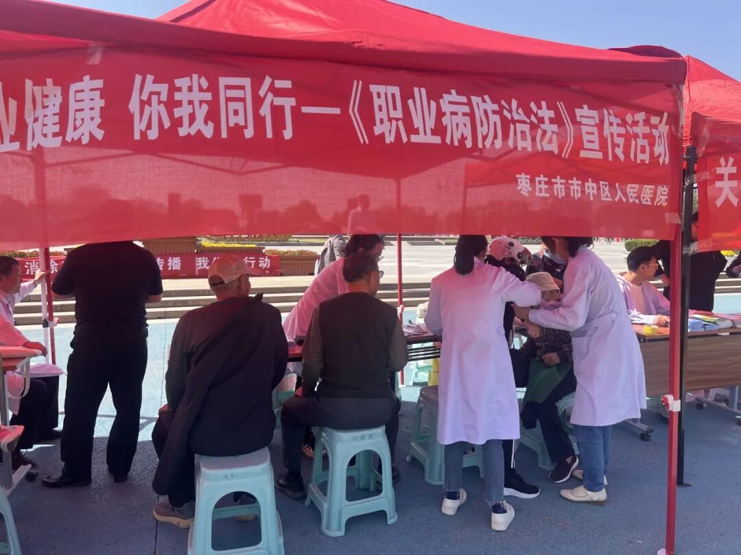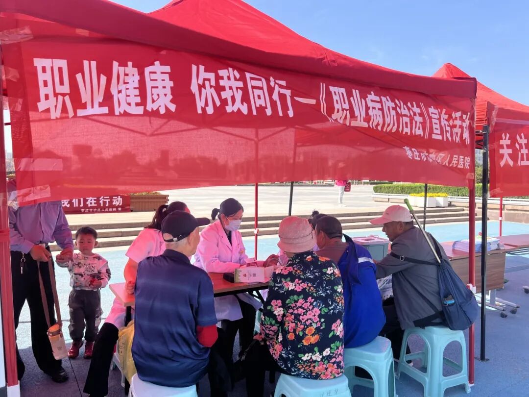 2024年4月25日至5月1日是第22个《职业病防治法》宣传周,为深入宣传贯彻《职业病防治法》,普及职业病防治和职业健康知识,切实保障广大劳动者职业健康权益,4月25日上午,我院在光明广场参加了由市中区卫健局举行的健康教育活动。