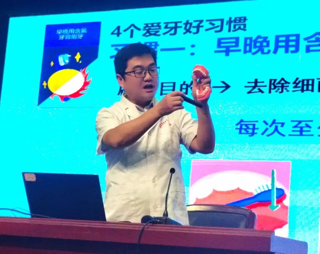 为了让学生从小树立正确保护牙齿的意识,养成良好的口腔卫生习惯,口腔科吕寻玺主治医师以PPT的形式和牙齿模型讲解了口腔基本知识,包含了牙齿的结构、功能、替换以及常见的口腔疾病及预防知识,如龋病的病因、牙龈炎的防治和牙外伤的处理等。并仔细讲解了正确的刷牙方法,帮助同学们树立“爱牙护牙”意识,养成良好的生活习惯,呵护口腔健康。现场演示巴氏刷牙法,并与同学们进行互动,希望同学们远离口腔疾病危害,亮出最好的“微笑名片”。
