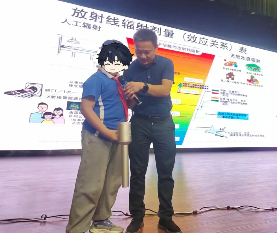 为了培养青少年科学素养和对核安全的科学认知,正确认识通信基站、微波炉、手机、医疗设备等电子设备的辐射影响,董文波主任通过通俗易懂地语言,深入浅出地向师生们讲述了什么是辐射、电磁辐射的应用、如何防范生活中的辐射等知识。讲座中还增设了现场问答环节,对师生关注的问题进行释疑,指导如何正确认识身边的辐射,懂得个人如何做好防护,避免误照射风险。活动现场气氛活跃,在场的同学们争先恐后地举手抢答、积极参与互动,表现出对核科学知识的热情与兴趣。