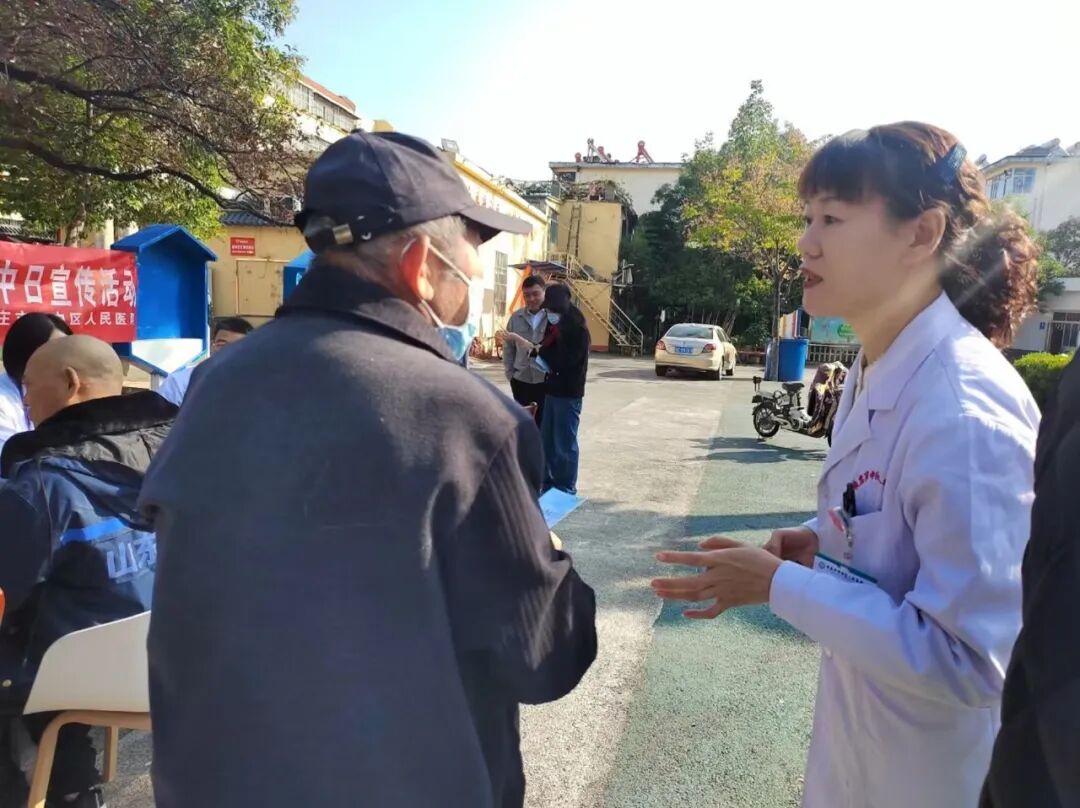义诊活动现场,前来咨询问诊的群众络绎不绝。各位专家发挥专业特长,耐心地为居民进行体格检查,阅片,分析病情、解难答疑,并指导患者合理膳食、适当运动、康复保健等注意事项。医院神经内科张敬梅主任为现场群众提供卒中防治咨询,用通俗易懂的语言讲解了卒中的诱发因素、预防策略、急救措施及康复护理等内容,并重点阐述了“中风120”---快速识别脑卒中相关知识。