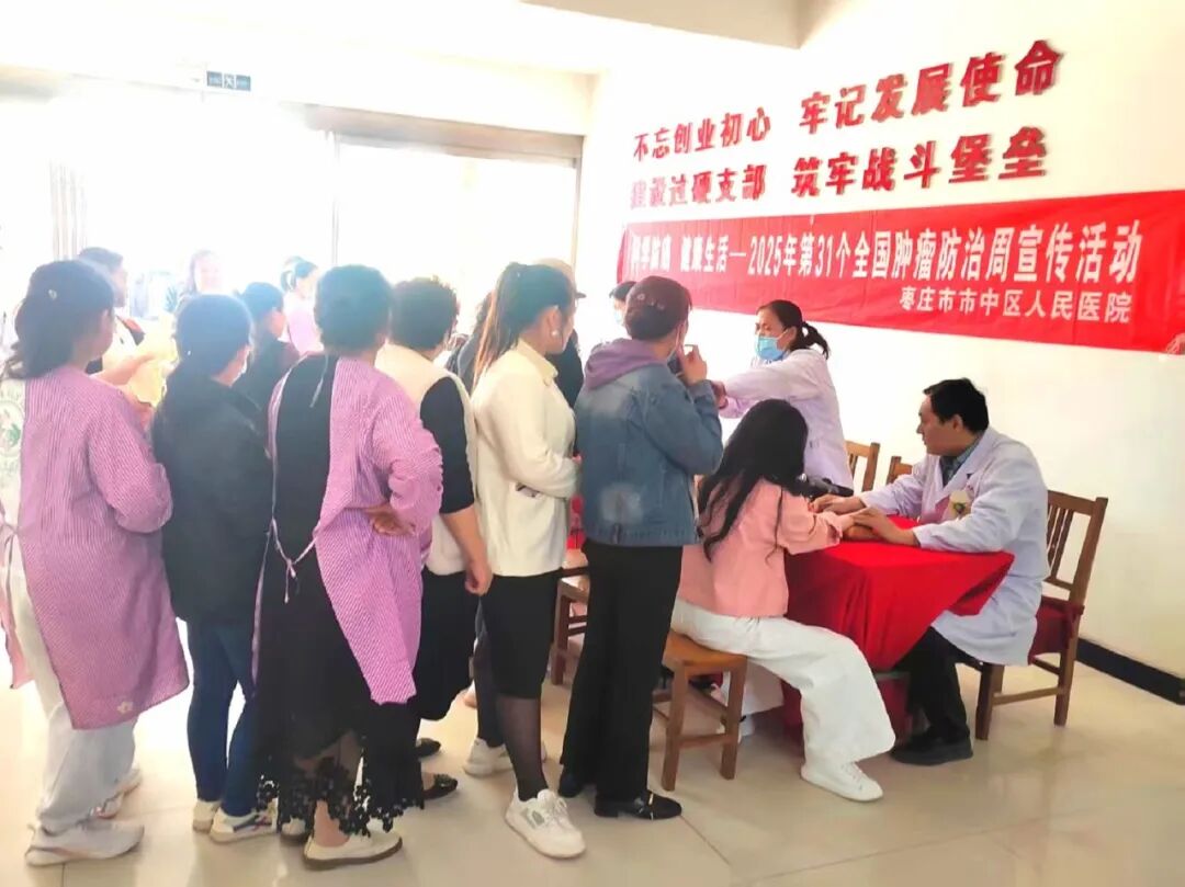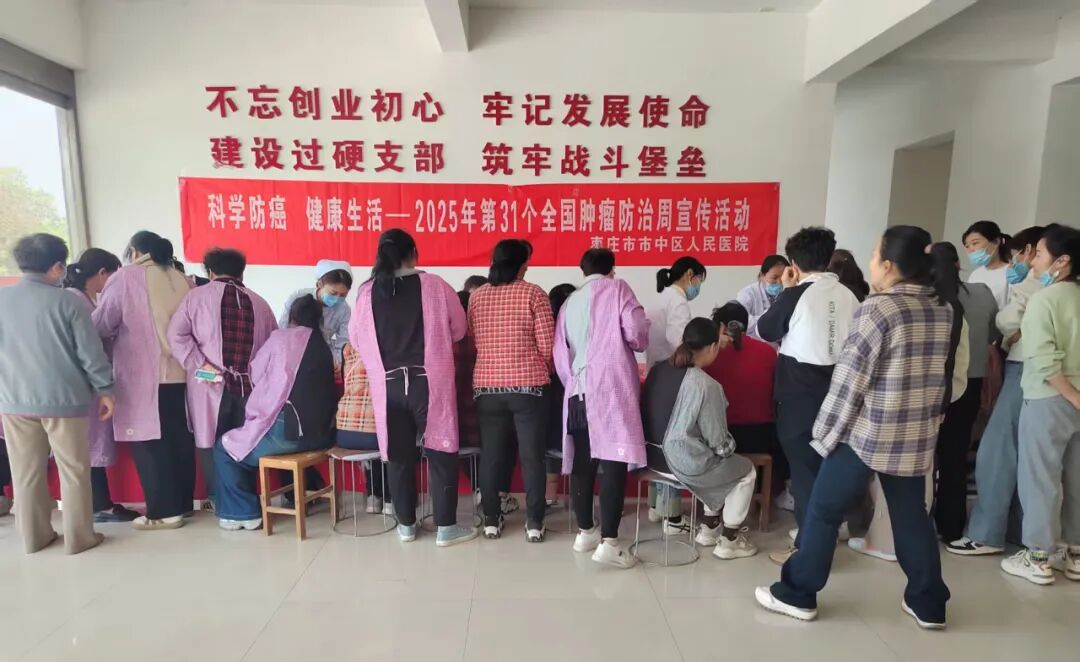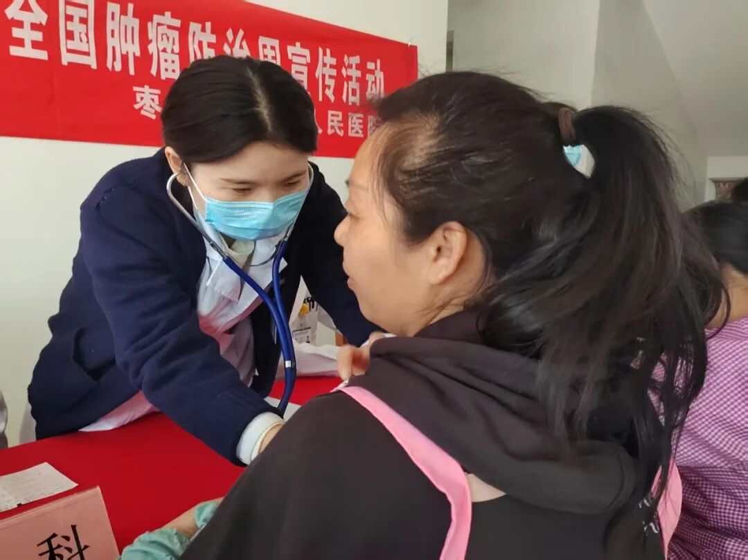 在第31个全国肿瘤防治宣传周来临之际,为了广泛普及肿瘤防治科普知识,大力倡导健康生活方式,营造全民防治的浓厚氛围,我院组织内科、妇产科、中医科、病理科等多科室医务人员,走进枣庄超越针织股份有限公司,开展宣传义诊活动。
