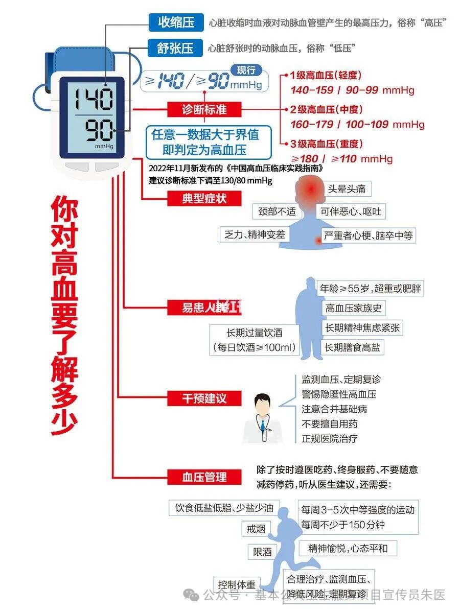 2.血压超过130/80mmHg以上即应引起关注,随着血压的升高可能带来对于心脑肾等器官的危害,应及早开始生活方式干预,对于已经出现靶器官损害和心脑血管并发症的患者应尽早启动降压药物治疗。