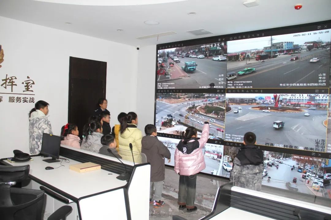 活动中,民警带领小朋友们参观了派出所的勤务指挥大厅、执法办案区、警民调解室、综合服务大厅、警史展览馆等区域,详细介绍了派出所日常接处警工作以及各类警用装备的功能及用途。